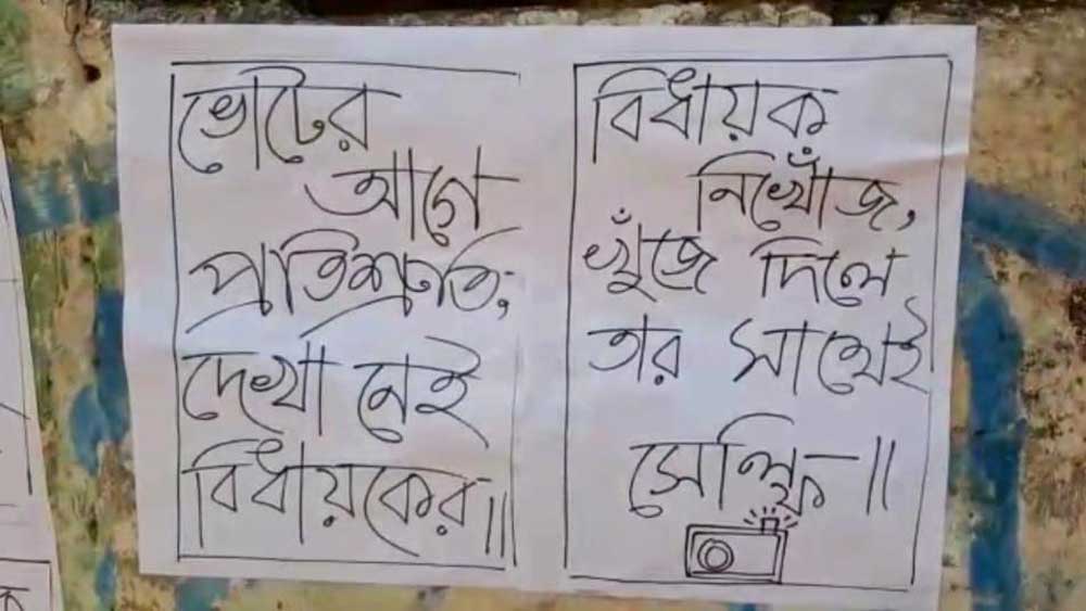 ভোটে জেতার পর বিধায়কের দেখা মিলছে না। ‘নিরুদ্দেশ’ খড়গপুরের বিজেপি বিধায়ক হিরণ্ময় চট্টোপাধ্যায়। পর্দার হিরণ। ওই শহরের ৩৫ নম্বর ওয়ার্ডের তালবাগিচা এলাকায় অভিনেতার ছবি এঁকে এই মর্মেই পোস্টার পড়তে শুরু করেছে। এই নিয়ে তৃণমূল আর বিজেপি-র মধ্যে শুরু হয়েছে জোর রাজনৈতিক তরজা।