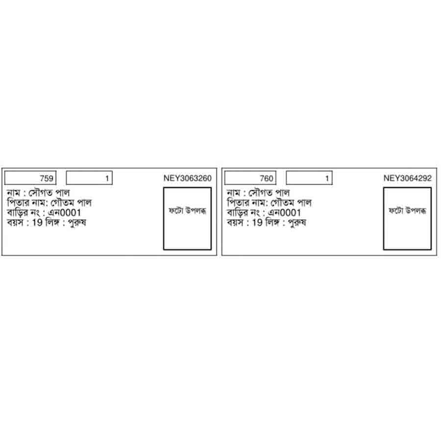 ৯০ নম্বর রানাঘাট দক্ষিণ বিধানসভা কেন্দ্রের ৯০ নম্বর বুথের বাসিন্দা বছর উনিশের নতুন ভোটার সৌগত পাল। এই বছরই প্রথম তাঁর নাম ভোটার তালিকায় অন্তর্ভুক্ত হয়েছে। তালিকা অনুযায়ী, ৭৫৯ নম্বরে রয়েছে তাঁর নাম। সেখানে তাঁর বাবার নাম গৌতম পাল। আবার, ওই একই তালিকায় ৭৬০ নম্বরেও রয়েছে সৌগতের নাম। সেখানেও বাবার নামের জায়গায় গৌতম পাল। শুধু তা-ই নয়, দুই ক্ষেত্রেই বাড়ির নম্বরও এক। ঘটনাটি সামনে আসতেই এলাকায় শুরু হয়েছে চর্চা। অনেকেই ব্যঙ্গ করে প্রশ্ন তুলছেন— “তা হলে কি একই ব্যক্তি এ বার দু’বার ভোট দেবেন?”