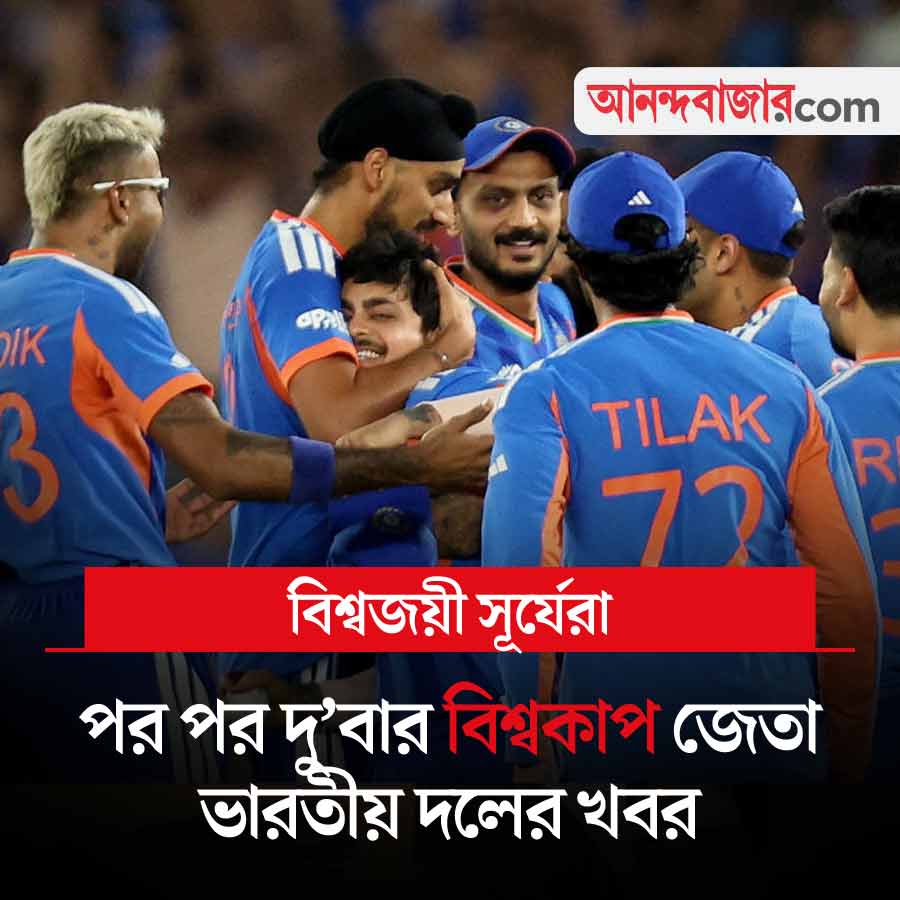 আবার টি-টোয়েন্টি ক্রিকেটে বিশ্বচ্যাম্পিয়ন ভারত। পর পর দু’বার। রবিবার সূর্যকুমার যাদবের দল ফাইনালে নিউ জ়িল্যান্ডকে হারিয়ে চ্যাম্পিয়ন হয়েছে। ২০২৪ সালে রোহিত শর্মার নেতৃত্বে ট্রফি জিতেছিল ভারত। তার পর ফের সেরার মুকুট ভারতীয় ক্রিকেটে। অহমদাবাদের এই নরেন্দ্র মোদী স্টেডিয়ামে এক দিনের বিশ্বকাপের ফাইনালে হেরেছিল ভারত। ফলে এই স্টেডিয়ামে শাপমুক্তিও হল। বিশ্বজয়ী ভারতীয় দলের সব খবর।
