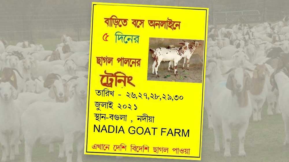 ‘বাড়িতে দু’টি ছাগল কিনে শুরু করুন। তার পর বাকিটা অনলাইনে শিখে যাবেন।’ করোনাকালে অন্য রকমের এক জীবিকার কথা বলছেন নদিয়ার বগুলার বাসিন্দা বিকাশ বিশ্বাস। অনলাইনে ছাগল প্রতিপালনের প্রশিক্ষণ দিচ্ছেন তিনি। বিকাশের দাবি, বাড়িতে কুকুর পোষার ক্ষেত্রে যদি প্রশিক্ষণের প্রয়োজন হয় তা হলে ছাগলের ক্ষেত্রে হবে না কেন।