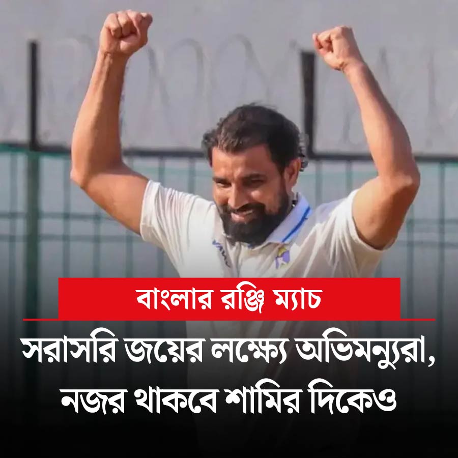 রঞ্জি ট্রফিতে ভাল জায়গায় বাংলা। অসমের বিরুদ্ধে ৬৭ রানে এগিয়ে অভিমন্যু ঈশ্বরণের দল। হাতে এখনও ৬ উইকেট। সরাসরি জয়ের কথা ভাবতেই পারে বাংলা। নজর রয়েছে মহম্মদ শামির দিকেও। তাঁর সামনে আবার ভারতীয় দলে জায়গা করে নেওয়ার লড়াই। কল্যাণীতে আজ তৃতীয় দিনের খেলা শুরু সকাল ৯টা থেকে।