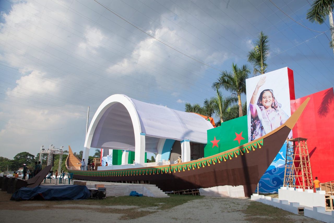 শনিবার সকাল ১০টায় ঐতিহাসিক সোহরাওয়ার্দি উদ্যানে সম্মেলনের অনুষ্ঠানিক উদ্বোধন করেন আওয়ামি লিগ সভাপতি ও প্রধানমন্ত্রী শেখ হাসিনা। নৌকার আঙ্গিকে তৈরি করা হয়েছে সম্মেলনের মূল মঞ্চ। লম্বায় ১৫০ ফুট, চওড়ায় ৮৪ ফুট। মঞ্চের ছাদের উচ্চতা ৪২ ফুট। নির্মাণকাজে যুক্ত কর্মীরা জানান, মূল মঞ্চ হয়েছে পাঁচ স্তরের।