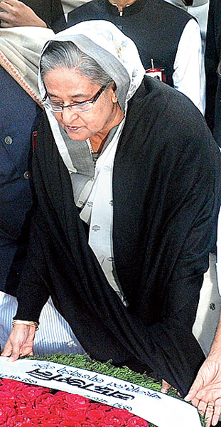 শহিদ বুদ্ধিজীবী স্মারকে শ্রদ্ধা জানাচ্ছেন বাংলাদেশের প্রধানমন্ত্রী শেখ হাসিনা। বুধবার ঢাকায়। ছবি: বাপি রায়চৌধুরী।