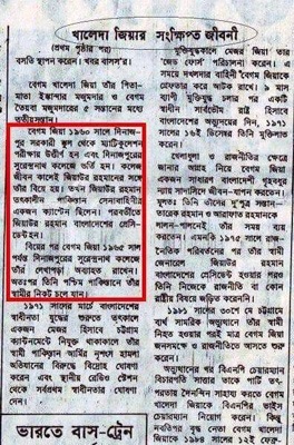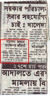 ১৯৯১ সালের ২০শে মার্চ তারিখে দৈনিক বাংলা পত্রিকায় সরকারী সংবাদ সংস্থা বাসস থেকে পাঠানো তৎকালীন প্রধানমন্ত্রী খালেদা জিয়ার জীবনী ছাপা হয়। এতে উল্লেখ করা হয়, তাঁর জন্মদিন ১৯৪৫ সালের ১৯শে অগষ্ট।