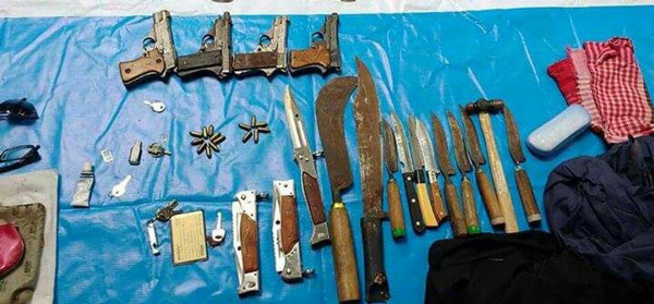 ‘জাহাজ-বিল্ডিং’ থেকে উদ্ধার হওয়া অস্ত্র। নিজস্ব চিত্র।