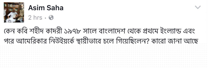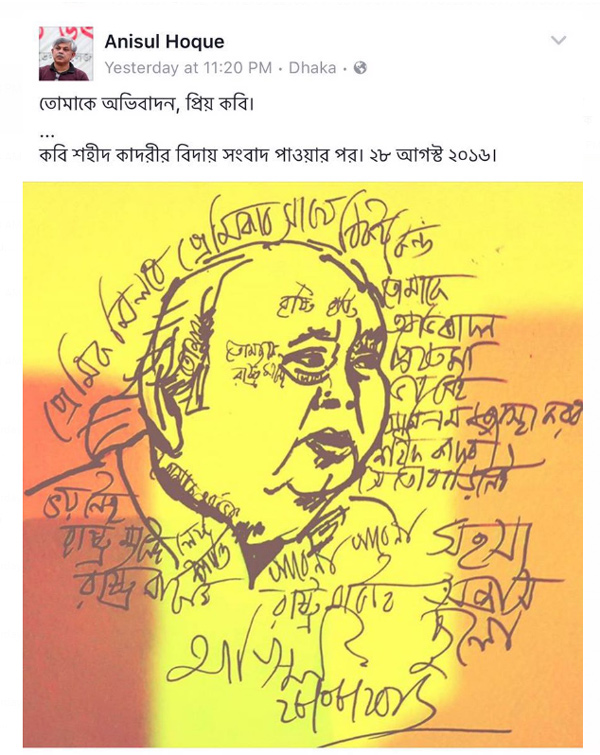 শহীদ কাদরীর বিদায় সংবাদ পাওয়ার পর ফেসবুকে শ্রদ্ধা নিবেদন কবি আনিসুল হকের।