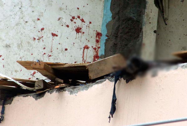 বিস্ফোরণের পর হোটের ঘরেই পড়ে আছে জঙ্গির দেহ।