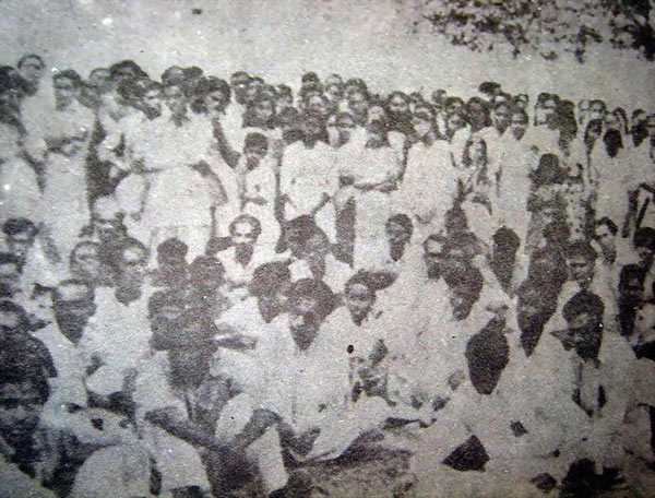 ২১ ফেব্রুয়ারি, ১৯৫২। ঢাকা বিশ্ববিদ্যালয়ের চত্বরে সভা।