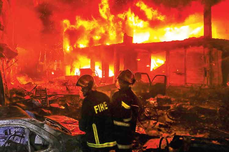 যানজটে ঠাসা সঙ্কীর্ণ গলিতে একের পর এক গ্যাস সিলিন্ডারের বিস্ফোরণ। আগুনের তাপে ফেটে যায় রাস্তার পাশে থাকা বিদ্যুতের ট্রান্সফর্মারও। তা থেকে আগুন ছড়ায় একটি বহুতলে। এ ভাবেই বুধবার রাত ১০টা নাগাদ লঙ্কাকাণ্ড বাংলাদেশের রাজধানী ঢাকার চকবাজার চুড়িহাট্টায়। দেড় কিলোমিটার দূরে বিশ্ববিদ্যালয় চত্বরে কেন্দ্রীয় শহিদ মিনারে যখন একুশের ভাষা দিবস স্মরণের তোড়জোড়ে শেষ মুহূর্তের ব্যস্ততা, দমকল বাহিনীর শ’দুয়েক সদস্য প্রাণ বাজি রেখে লড়াই শুরু করেছেন লেলিহান অগ্নিশিখার বিরুদ্ধে। পাশাপাশি চলে উদ্ধার কাজ। বৃহস্পতিবার সন্ধ্যা পর্যন্ত ৮১টি মৃতদেহ উদ্ধার হয়েছে। অন্তত ৫০ জন হাসপাতালে, যাঁদের বেশ কয়েক জনের অবস্থা খুবই আশঙ্কাজনক।