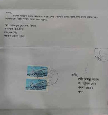 জেএমবির নামে হত্যার হুমকি দিয়ে চিঠি পাঠানো হলবাংলাদেশের পাবনা শহরের প্রাচীন মিষ্টির দোকান লক্ষ্মী মিষ্টান্ন ভাণ্ডারের মালিককে। বুধবার বিকেল ৩টেয় একটি রেজিস্ট্রি চিঠি আসে। সেই চিঠি খুলতেই হুমকির বিষয়টি জানাজানি হয়। চিঠির খামের ওপরে লক্ষ্মী মিষ্টান্ন ভাণ্ডার, আব্দুল হামিদ রোড, পাবনা লেখা।