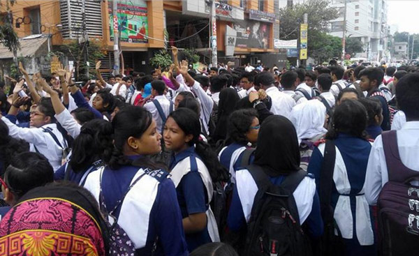 সুরাইয়ার মৃত্যু সংবাদ পেয়ে রাস্তায় পড়ুয়াদের বিক্ষোভ। ছবি: বাংলা ট্রিবিউন।