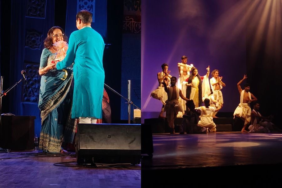 দ্বিতীয় পর্বে মঞ্চস্থ হয় ‘পরিবর্তন প্রবর্তন’। এই পর্বে রবীন্দ্রনাথের চিত্রাঙ্গদা, বাল্মিকী প্রতিভা, চণ্ডালিকা, রক্তকরবীর নির্বাচিত অংশ মিলিয়ে গড়ে ওঠে এক সুন্দর নৃত্যনাট্য। যেখানে, রবীন্দ্রনাথের সেই চিরকালীন বার্তাই মঞ্চে ফুটে উঠল—জীর্ণ পুরাতনকে সরিয়ে নতুনের প্রতিষ্ঠা। লাইভ মিউজ়িক ও কোরিয়োগ্রাফিতে পরিবেশিত প্রায় ৩০ জন শিল্পীর এই অনবদ্য পারফরম্যান্সে কেন্দ্রীয় ভূমিকায় ছিলেন মৌনীতা চট্টোপাধ্যায় ও সৃজন চট্টোপাধ্যায়।
