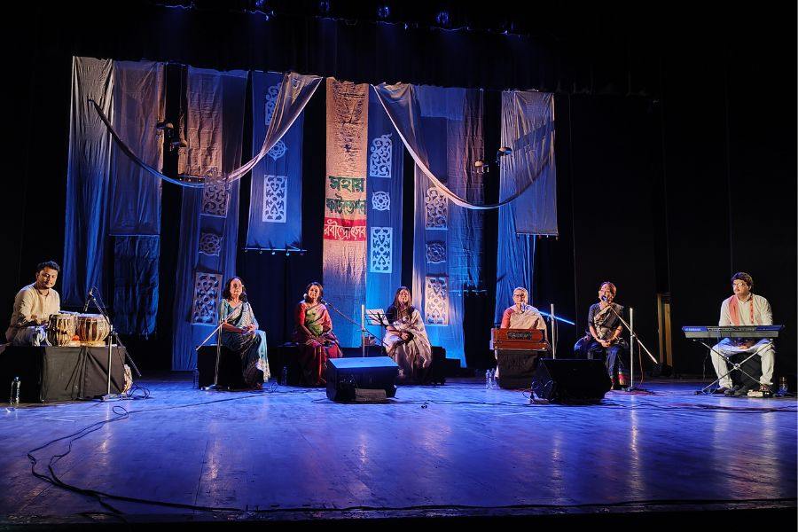 অনুষ্ঠানের প্রথম পর্বে, শ্রোতারা যেন এক অন্যরকম রবীন্দ্রনাথকে খুঁজে পেলেন—যিনি কেবল কবি নন, বরং একজন আত্মিক পথপ্রদর্শক। প্রখ্যাত শিল্পীরা, প্রমিতা মল্লিক, পূর্ণিমা ঘোষ, ব্রততী বন্দ্যোপাধ্যায়, শাশ্বতী গুহ ঠাকুরতা ও উপালী চট্টোপাধ্যায়—তাঁদের কণ্ঠ ও আবৃত্তির ভঙ্গিতে যেন কবিগুরুর ভাবনা, প্রেম, দ্বন্দ্ব ও মৌলিক প্রশ্নগুলিকে নতুন করে জীবন্ত করে তুললেন। যেখানে রবীন্দ্রনাথ শুধুই অতীত নন, বরং আজকের মানুষের আত্মসন্ধানী চেতনারও একটি অংশ।