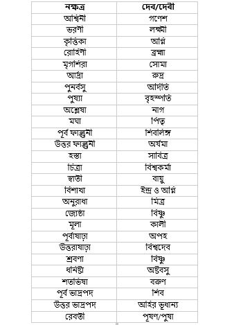 এভাবেই, জ্যোতিষশাস্ত্র অনুসারে ২৭টি প্রধান নক্ষত্রেরও এক-একজন অধিপতি দৈবশক্তি রয়েছে...