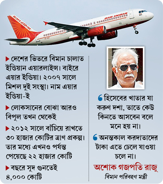বিক্রির কথা বলেননি। কিন্তু তেমনই করের টাকায় ভর্তুকি জুগিয়ে এয়ার ইন্ডিয়াকে (এআই) অনন্তকাল বাঁচিয়ে রাখা যাবে না বলেও স্পষ্ট জানিয়ে দিলেন বিমানমন্ত্রী অশোক গজপতি রাজু।