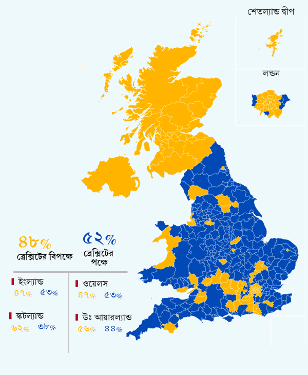 ইউরোপীয় ইউনিয়ন থেকে বেরিয়ে যাওয়ার পক্ষেই রায় দিল ব্রিটেন