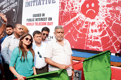 আজ বিশ্ব টেলিকম দিবস উপলক্ষে নিয়ম মেনে পথে ফোন ব্যবহার নিয়ে ট্যাবলো আনল কলকাতা পুরসভা ও হাইটেক মোবাইল।