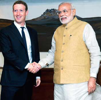 হাতে হাত। শুক্রবার প্রধানমন্ত্রী নরেন্দ্র মোদীর সঙ্গে দেখা করলেন ফেসবুকের প্রতিষ্ঠাতা ও কর্ণধার মার্ক জুকেরবার্গ।