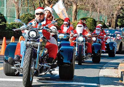 সান্তাক্লজের সাজে ‘হার্লে সান্তা ক্লাব’-এর ৫০০ আরোহী। ছবি: এএফপি।
