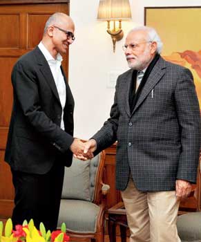 প্রধানমন্ত্রী নরেন্দ্র মোদীর সঙ্গে দেখা করলেন মাইক্রোসফটের কর্ণধার সত্য নাদেল্লা।