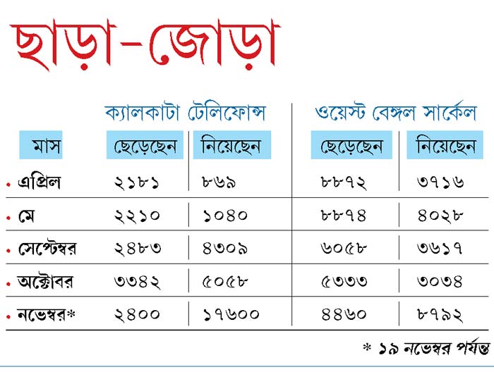 সংস্থা সূত্রের দাবি, মাস দুয়েক আগেই বিএসএনএলের শাখা ক্যালকাটা টেলিফোন্স সার্কেল (ক্যালটেল) এই সাফল্য পেয়েছে। আর, চলতি নভেম্বরে রাজ্যে তাদের অপর শাখা ওয়েস্ট বেঙ্গল সার্কেলও একই ভাবে বাড়িয়েছে গ্রাহক সংখ্যা। সব মিলিয়ে তা ঊর্ধ্বমুখী নতুন গ্রাহক টানার প্রতিযোগিতায়। ১৯ নভেম্বর পর্যন্ত হিসেবে ক্যালটেলের প্রায় ২,৪০০ জন গ্রাহক বিএসএনএল ছেড়ে গেলেও অন্য সংস্থার ১৭,৬০০-রও বেশি গ্রাহক পেয়েছে তারা। আর ওয়েস্ট বেঙ্গল সার্কেলে ৪,৪৬০ জন বিএসএনএল সংযোগ ছাড়লেও অন্যান্য সংস্থার ৮,৭৯২ জন গ্রাহক পেয়েছে তারা।