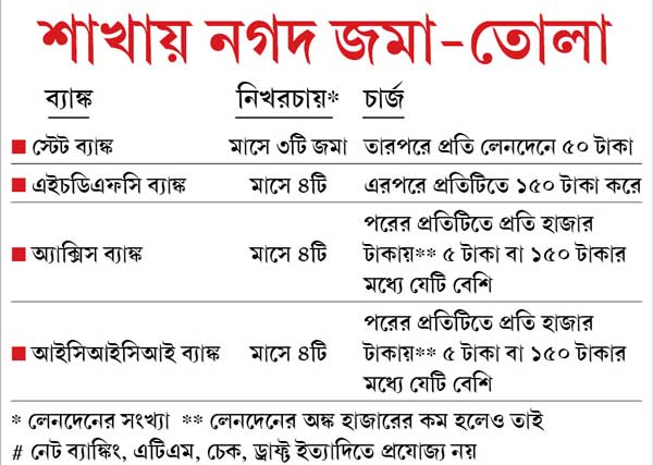 বহু ব্যাঙ্কিং বিশেষজ্ঞ বলছেন, সেভিংস অ্যাকাউন্টে টাকা থাকলে, তার থেকে ব্যাঙ্কের আয় হয়। সেখানকার টাকা তুলনায় অনেক বেশি সুদে ঋণ দেয় তারা। তাই তারপরেও কেন নগদ লেনদেনে এত ফি নিতে হচ্ছে, তা স্পষ্ট করা জরুরি। এ ছাড়া, অধিকাংশ এটিএমে টাকা জমা দেওয়ার সুবিধা বন্ধ করেছে ব্যাঙ্কগুলি। নিজের বা অন্য ব্যাঙ্কের এটিএমে ক’টি লেনদেন মাসে নিখরচায় করা যাবে, বেঁধে দিয়েছে তা-ও। তাই অনেকের প্রশ্ন, এই পরিস্থিতিতে শাখায় গিয়ে নগদ লেনদেনেও কী যুক্তিতে রাশ টানছে ব্যাঙ্কগুলি?