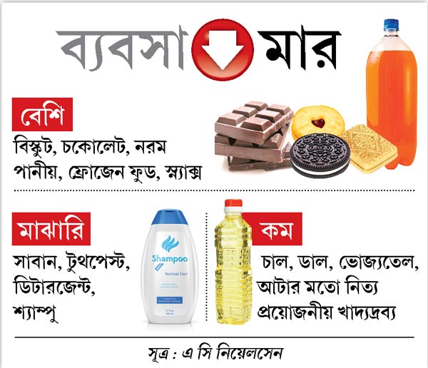 ৮ নভেম্বর নোট বাতিলের ঘোষণার সপ্তাহ দুই-তিনের মধ্যে করা এ সি নিয়েলসেনের সমীক্ষায় দেখা গিয়েছিল, বিক্রিবাটা কমেছে দেশের ৭০% দোকানে। গ্রামে বিক্রি গোত্তা খেয়েছে ৬০-৭০ শতাংশ। তখনকার তুলনায় পরিস্থিতি এখন কিছুটা শুধরেছে ঠিকই। কিন্তু বাজারের হাল ফেরার আশার আলো দেখা যাচ্ছে না এখনও।