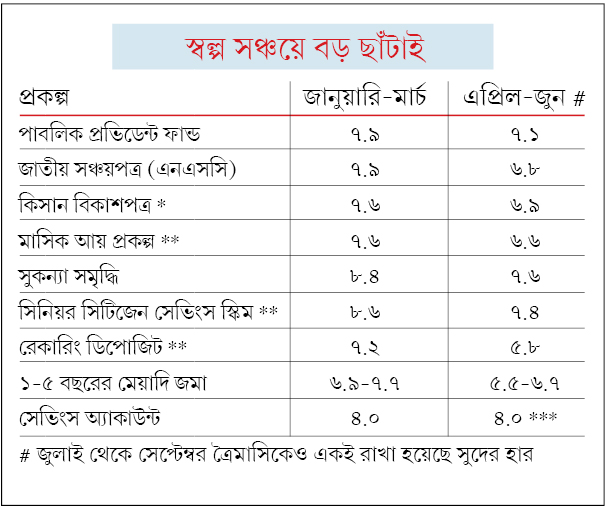 • পাবলিক প্রফিডেন্ড ফান্ডে (পিপিএফ) সুদ ৭.৯% শতাংশ থেকে কমিয়ে করা হয়েছে ৭.১%। এতটা কমা সত্ত্বেও প্রকল্পটি এই বাজারেও যথেষ্ট আকর্ষণীয়।