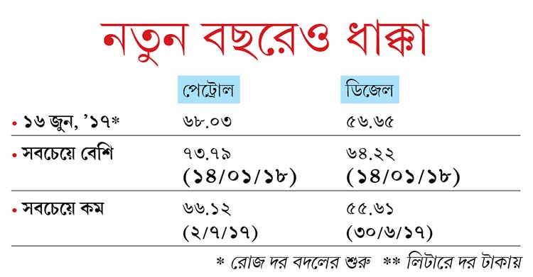 গত ১৬ জুন প্রতিদিন জ্বালানি তেলের দাম ঘোষণার নিয়ম চালুর পর থেকে পেট্রোলের দর শনিবারই সবচেয়ে বেশি। ডিজেলও তার সর্বোচ্চ উচ্চতায়। শুধু তা-ই নয়, ডিজেলের এই দাম ২০১৪ সালের ৩১ অগস্টের পরে সবচেয়ে বেশি। পেট্রোলও ২০১৫ সালের ১৬ মে-র পরে সব থেকে উপরে।