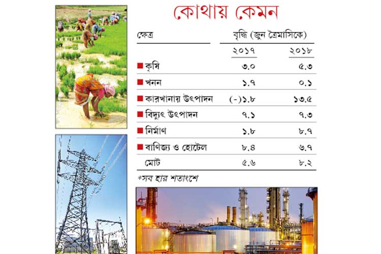 চলতি সপ্তাহে বাজারে জ্বালানি জোগাতে পারে এই অর্থবর্ষের প্রথম তিন মাসের বৃদ্ধি ৮.২% ছোঁওয়া। এই হার প্রায় সব পূর্বাভাসকে ছাপিয়ে গিয়েছে। টপকেছে চিনকেও। এতে মদত জুগিয়েছে কৃষি, কারখানা এবং নির্মাণ শিল্পে উৎপাদন বৃদ্ধি। প্রকৃত বৃদ্ধি কতটা হয়েছে, তা নিয়ে অবশ্য সন্দেহ প্রকাশ করেছে সংশ্লিষ্ট মহলের একাংশ। যুক্তি দিয়েছে, নোটবন্দির দরুন গত বছর এই সময় বৃদ্ধির ভিত (৫.৬%) এতটাই আলগা ছিল যে, তুলনায় এ বারের হারকে বেশি ঝকঝকে দেখাচ্ছে। তবে কেন্দ্রের বক্তব্য, অগ্রগতির এই হার উন্নয়নশীল দেশগুলির মধ্যে প্রথম সারিতে এনেছে ভারতকে। যা এখানে পুঁজি ঢালার ক্ষেত্রে বিদেশি লগ্নিকারীদের উৎসাহিত করবে।