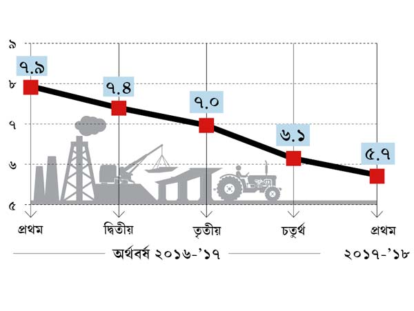 ত্রৈমাসিকে বৃদ্ধির হার শতাংশে