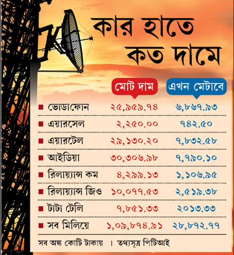 নিলামে অংশ নেয় এয়ারটেল, ভোডাফোন, আইডিয়া-সহ ৮ সংস্থা। ওই ৩ সংস্থাই উপুড় করেছে ৮৫,৩৯৬ কোটি টাকা। কোনও স্পেকট্রাম জেতেনি শুধু টেলিনর।