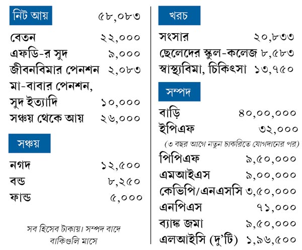 কী করেন: বেসরকারি সংস্থার কর্মী। দু’বছরের মধ্যে অবসর নিতে চান। নিজের বাড়ি