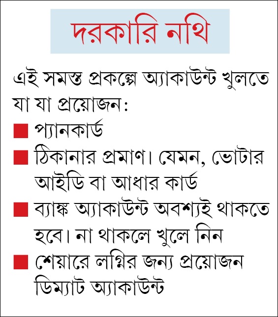 • এর পাশাপাশি যে সব স্বনির্ভর মানুষের পুঁজির বাজার সম্পর্কে আগ্রহ রয়েছে, তাঁরা একটু একটু করে লগ্নি করতে পারেন শ্রেষ্ঠ মানের ইকুইটি শেয়ারেও।