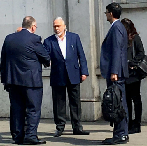 শর্তসাপেক্ষে জামিন পাওয়ার পর আদালতের বাইরে বিজয় মাল্য। গত এপ্রিলে পিটিআইয়ের তোলা ছবি।