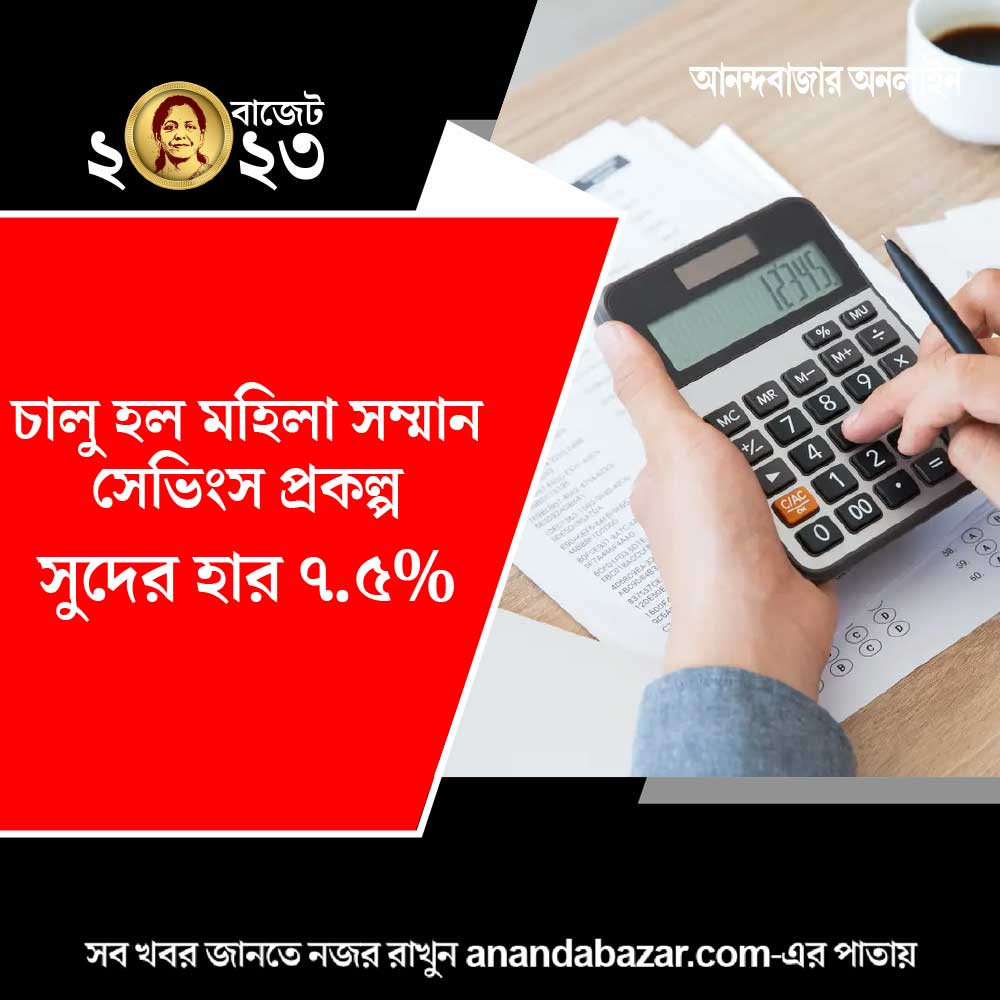 মহিলাদের জন্য আনা হল স্বল্পসঞ্চয় প্রকল্প। ২ বছরের জন্য রাখা যাবে ২ লক্ষ টাকা। সুদের হার ৭.৫। নাম ‘মহিলা সম্মানপত্র’। ৩১ মার্চ ২০২৫ সাল পর্যন্ত এই টাকা রাখা যাবে।