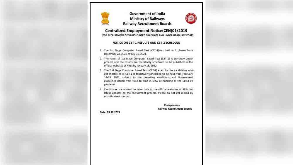 ট্রাফিক অ্যাসিসট্যান্ট, স্টেশন মাস্টার-সহ বিভিন্ন নন টেকনিক্যাল পদের জন্য বিজ্ঞাপন দেওয়া হয়। গোটা দেশে আবেদনকারীদের পরীক্ষা হয় সাত দফায়। ২০২০ সালের ২৮ ডিসেম্বর থেকে ২০২১ সালের ৩১ জুলাই পর্যন্ত কম্পিউটার নির্ভর পরীক্ষা হয়। কিন্তু সেই পরীক্ষার ফল এখনও প্রকাশ হয়নি। রেল জানিয়েছে, এখন সেই ফল প্রকাশের উদ্যোগ নেওয়া হয়েছে। কাজ চলছে। আগামী ১৫ জানুয়ারি তা রেলওয়ে রিক্রুটমেন্ট বোর্ডের ওয়েবসাইটে তুলে দেওয়ার লক্ষ্য রয়েছে রেলের।