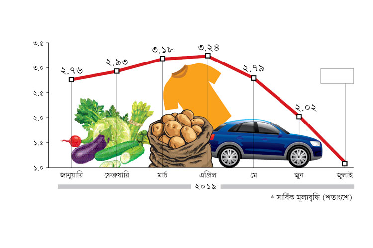 • সার্বিক মূল্যবৃদ্ধি ২৫ মাসের তলানিতে। জুলাইয়ে খুচরো মূল্যবৃদ্ধিও ৩.১৫%।