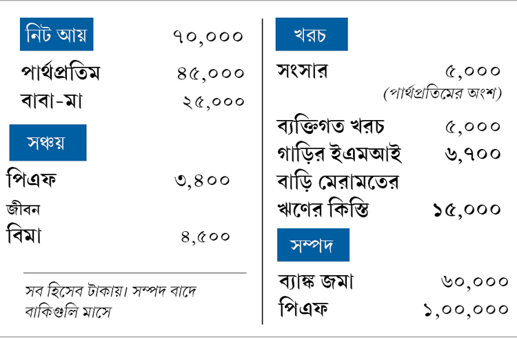 • পড়ার জন্য ঋণ নেন পার্থপ্রতিম। শোধ না হতেই চেপেছিল দু’চাকার ধার। দু’টিই শোধ করতে না করতে ফের নিয়েছেন বাড়ি সারানো ও গাড়ির ঋণ। ফলে কিস্তির টাকা গুনতে গিয়ে সঞ্চয়ের সুযোগই পাচ্ছেন না তিনি।