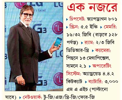 অ্যাপল ও স্যামসাঙের সঙ্গে যুঝে দামি ফোনের বাজার ধরতে এ বার আধ-লাখি স্মার্ট ফোন আনল এলজি ইলেকট্রনিক্স। সত্তর পেরিয়েও সতেজ অমিতাভ বচ্চনের মুঠোবন্দি করে। সোমবার মুম্বইয়ের মেহবুব স্টুডিওয় চির সবুজ ম্যাটিনি আইডলের হাতেই আত্মপ্রকাশ করল জি-থ্রি। যার ১৬ জিবি সংস্করণের দাম ৪৭,৯৯০ টাকা আর ৩২ জিবি প্রায় ৫১ হাজার। ভারতে এলজি-র অন্যান্য বৈদ্যুতিন পণ্যের তুলনায় ফোনের বিক্রি বেশ কম।