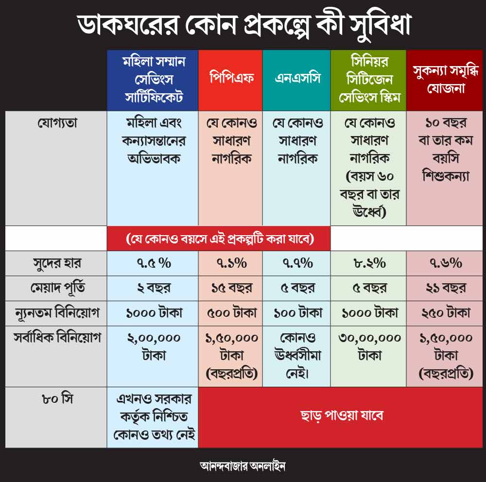 এ বার দেখে নেওয়া যাক পোস্ট অফিসের অন্যান্য উপলব্ধ প্রকল্পের সঙ্গে এই প্রকল্পের একটি তুলনামূলক আলোচনা