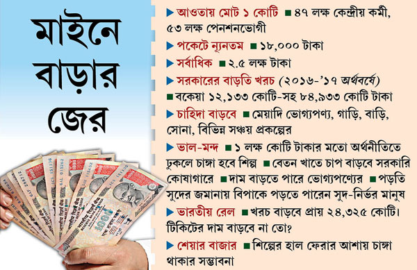 কেন্দ্রীয় সরকারি কর্মীদের জন্য ‘অচ্ছে দিন’ এক রকম এসেই গিয়েছে। শুধু তাঁদের ক্ষেত্রে নয়, গোটা অর্থনীতির কাছেই এই বেতন বৃদ্ধির প্রভাব বেশ বড়।
