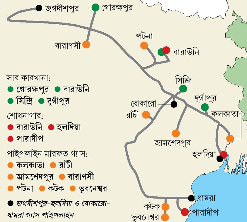 গত বছর জগদীশপুর-হলদিয়া ও বোকারো-ধামরা গ্যাস পাইপলাইনে অনুমোদন দিয়েছিল কেন্দ্রীয় মন্ত্রিসভা। পশ্চিমবঙ্গ, বিহার, ঝাড়খণ্ড, ওড়িশা, উত্তরপ্রদেশের মতো পাঁচটি রাজ্যের ৪৯টি জেলা এই গ্যাস পাইপলাইনের মাধ্যমে যুক্ত হবে। কলকাতা-সহ সাতটি শহরে গ্যাস বন্টন ব্যবস্থা গড়ে উঠবে। প্রায় ২,৫৩৯ কিলোমিটার পাইপলাইনের মাধ্যমে শিল্প, বাণিজ্য, পরিবহণ ও ঘরোয়া প্রয়োজনে গ্যাস সরবরাহ করা হবে। জাতীয় গ্যাস গ্রিডের সঙ্গে এর মাধ্যমেই জুড়ে যাওয়ার কথা পূর্ব ভারতের। দুর্গাপুর-সহ চারটি ইউরিয়া কারখানাতেও এর মাধ্যমে গ্যাস সরবরাহের পরিকল্পনা রয়েছে।