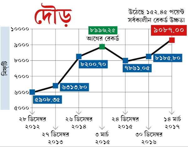 ১) বিরোধী শিবিরে ধস নামিয়ে উত্তরপ্রদেশ, উত্তরাখণ্ডে বিজেপি-র ভোটযুদ্ধ জয়কে ২০১৯-এর লোকসভা ভোটে দিল্লির মসনদে নরেন্দ্র মোদীর ক্ষমতায় ফিরে আসার ইঙ্গিত হিসেবেই ধরছে বাজার ২) রাজনৈতিক স্থিতি আর্থিক সংস্কারের পালে নতুন করে বাতাস জোগাবে বলেই তারা আশাবাদী ৩) রাজ্যসভায় বিজেপি-র জোর বাড়লে বিভিন্ন গুরুত্বপূর্ণ বিল পাশ করাতেও সুবিধা হবে ৪) বিদেশি আর্থিক সংস্থাগুলিও ভারতের বাজারে নতুন উদ্যম নিয়ে ফিরে আসবে বলে আশা বাজারের ৫) ভারতের বাজার ঘিরে আশা বাড়ছে বিদেশি লগ্নিকারী সংস্থাগুলিরও। তারা আরও বড় আকারে লগ্নি শুরু করলে শেয়ারের পাশাপাশি প্রাণ ফিরে পাবে ভারতীয় টাকা। কারণ, ডলার ভাঙিয়ে টাকায় রূপান্তরিত করেই ভারতের বাজারে শেয়ার কেনে তারা। ৬) টাকা আরও চাঙ্গা হওয়ার আশাতেই এ দিন ফাটকা কারবারিরা ডলার বেচে টাকা কিনতে শুরু করলে এতটা উচ্চতায় ওঠে ভারতীয় মুদ্রা।