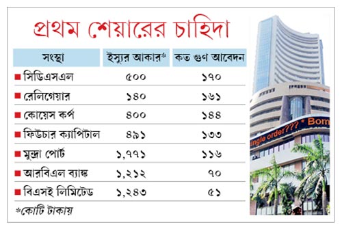 ইস্যুর গুণগত মান ভাল হলে এখন চাহিদার অভাব নেই। সদ্যসমাপ্ত সিডিএসএল আইপিও-তে আবেদন জমা পড়েছে ১৭০ গুণ। ভারতের আইপিও ইতিহাসে এতগুণ আবেদন আগে কোনও ইস্যুতে জমা পড়েনি। এর আগে রেলিগেয়ার পাবলিক ইস্যুতে এসেছিল প্রয়োজনের তুলনায় ১৬১ গুণ আবেদন। সিডিএসএল ইস্যুতে উচ্চবিত্তদের জন্য সংরক্ষিত শেয়ার কেনার আবেদন জমা পড়েছে ৫৬৩ গুণ এবং খুচরো লগ্নিকারীদের থেকে ২৩ গুণ। এই নিরিখে বলা যায়, বাজারে নথিবদ্ধ হলে সফল আবেদনকারীরা ভালই লাভের সন্ধান পাবেন এই ডিপোজিটরি কোম্পানির শেয়ার থেকে।