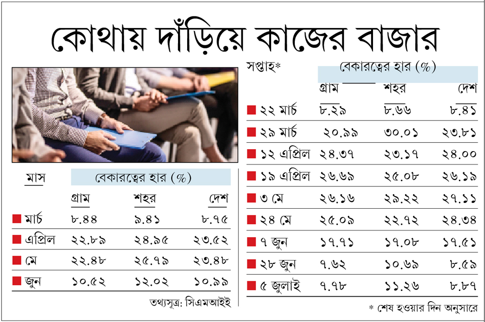 উপদেষ্টা সংস্থা সিএমআইই-র হিসেব, জুনে বেকারত্ব ১০.৯৯%। এপ্রিল ও মে-র প্রায় অর্ধেক। কিন্তু তেমনই লকডাউন শুরুর সময়ে (মার্চে ৮.৭৫%) যা ছিল, জুনে ওই হার তার থেকেও বেশ উপরে। এনএসএসও-র পরিসংখ্যানে বেকারত্ব ৬.১% হওয়াতেই হৈচৈ পড়েছিল। কারণ, তা ছিল সাড়ে চার দশকে সর্বোচ্চ। ফলে বেকারত্বের হার যে আরও অনেক কমা জরুরি, সে বিষয়ে সন্দেহ নেই কারও। অথচ সপ্তাহ তিনেক ধরে তা দাঁড়িয়ে প্রায় একই জায়গায়।