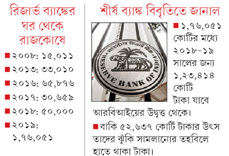 রিজার্ভ ব্যাঙ্কের বাড়তি ভাঁড়ারের ভাগ কেন্দ্রকে দেওয়া নিয়ে চলছিল টানাপড়েন। অবশেষে তাতে দাঁড়ি টেনে সোমবার আরবিআই বিবৃতিতে জানাল, ১.৭৬ লক্ষ কোটি টাকারও বেশি সরকারকে দিতে রাজি তারা। সিদ্ধান্ত নেওয়া হয়েছে জালান কমিটির সুপারিশ মেনে। বিশেষজ্ঞদের দাবি, আরবিআইয়ের ঘর থেকে এত বড় তহবিল কখনও ঢোকেনি রাজকোষে। তবে এ নিয়ে উদ্বেগ প্রকাশ করেছেন রিজার্ভ ব্যাঙ্কের প্রাক্তন গভর্নর রঘুরাম রাজন। তাঁর সতর্ক বার্তা এর বিরূপ প্রভাব পড়বে অর্থনীতিতে।