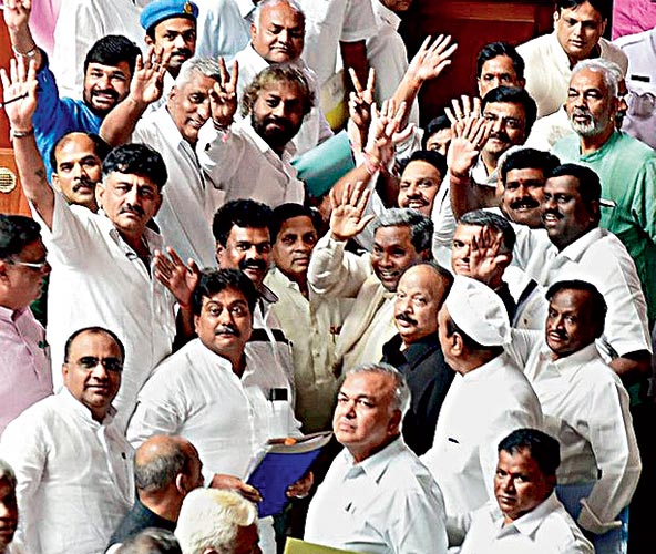 রাজনীতি। ঋণ মাফের ঘোষণার পরে কর্নাটক বিধানসভা। পিটিআইয়ের ফাইল চিত্র।
