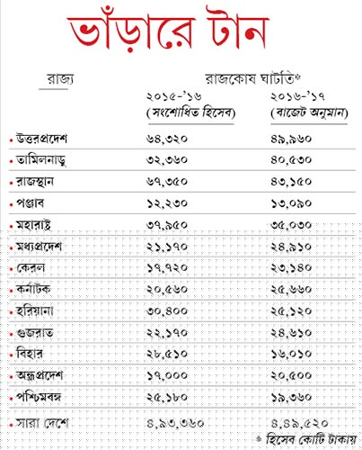 রাজ্যগুলির আর্থিক হাল কেমন, তা নিয়ে শীর্ষ ব্যাঙ্কের সদ্য প্রকাশিত রিপোর্টে চোখ রাখলেই স্পষ্ট যে, ঘাটতির এই অসুখ অধিকাংশ রাজ্যে কতটা গভীর। উত্তরপ্রদেশে গত অর্থবর্ষে তার অঙ্ক ৬৪,৩২০ কোটি টাকা। মহারাষ্ট্রে ৩৭,৯৫০ কোটি।
