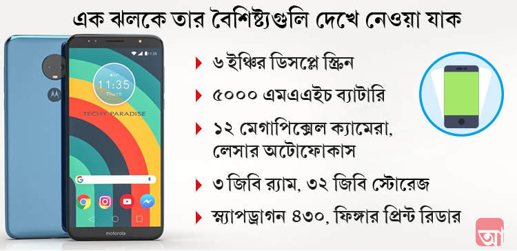 নতুন ফোন নিয়ে বাজারে হাজির মোটোরোলা। মাঝারি দামের এই ফোনটির সব থেকে বড় প্লাস পয়েন্ট গুলোর মধ্যে হল ব্যাটারি। ৫০০০ এমএএইচ ব্যাটারি মোটামুটি একদিন থেকে দেড় দিনের জন্যে যথেষ্ট, ২ অ্যাম্পিয়ার চার্জার থাকায় বেশ তাড়াতাড়ি ফোন চার্জ দেওয়া সম্ভব হবে।